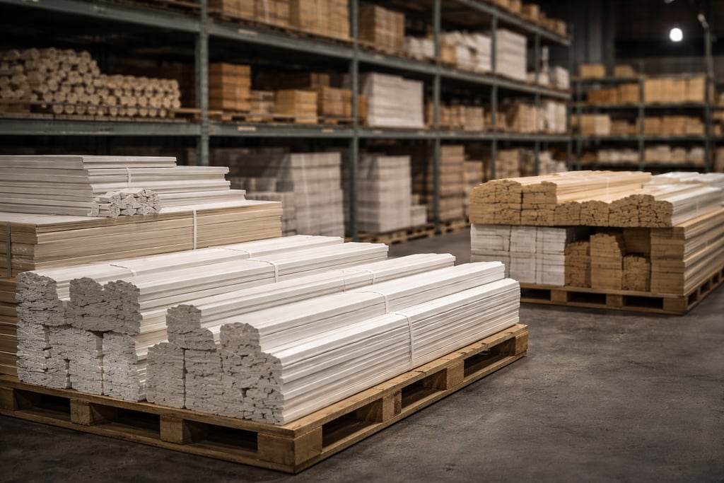 Baseboards, casing, crown moulding, and trim profiles available for contractors and remodel projects.