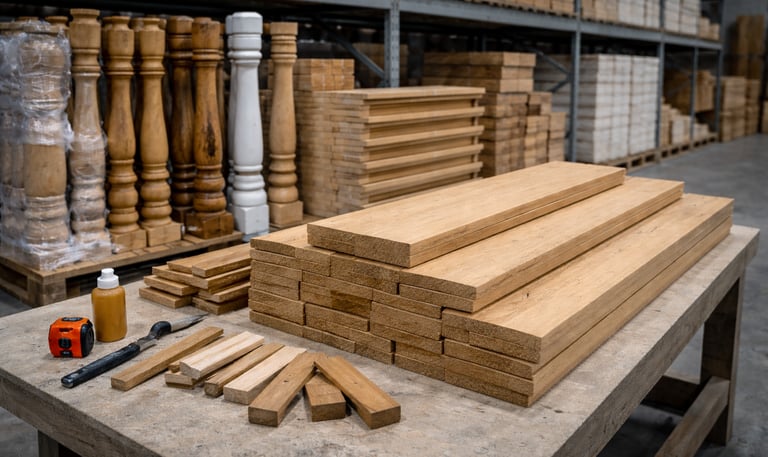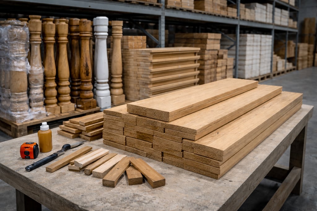 Stair threads, risers, nosing, and components are ready for pickup for new builds or remodels.